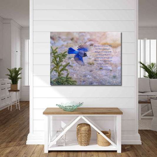 John 15:16 Christian Inspirational Wall Art, Stellar's Jay Print Scripture Canvas, Rocky Mountain Wild Birds, Bible Verse, I Have Chosen You