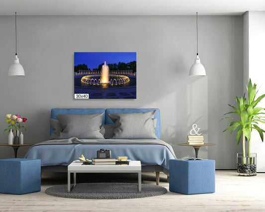 World War II Memorial at Night, Washington D.C Landmark Print, Canvas Wall Art Prints, Wall Decor for Home, Living Room, Bedroom and Office