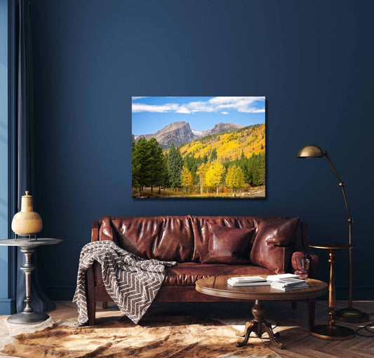 Hallett Peak in Autumn Rocky Mountain National Park, Colorado Fall Landscape Canvas Wall Art, Mountain Scene Decor for Home or Office