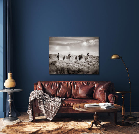 Wild Horses Running Photo Canvas Print, Colorado Cowboy Old West Decor for Home or Office, Mustangs Mares and Foals, Mountain Desert Scenery