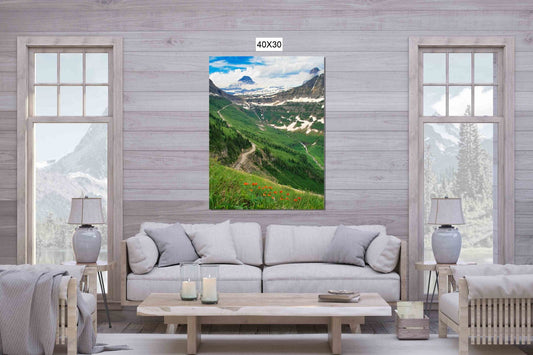 Highline Trail Glacier National Park, Going to the Sun Road, Montana Mountain Landscape, Logan Pass, Vertical Canvas Wall Art Print for Home