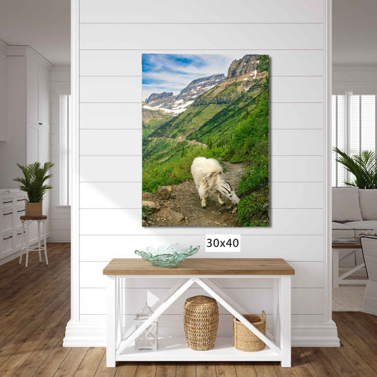 Mountain Goat on Highline Trail Glacier National Park, Going to the Sun Road, Montana Mountain Landscape, Logan Pass, Vertical Canvas Print