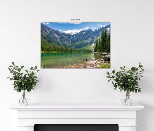 Rocky Mountain Photography, Landscape Canvas Wall Art Print, Glacier National Park Avalanche Lake, Fine Art, Decor Home Office Living