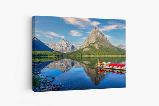Many Glacier Swiftcurrent Lake Reflection With Canoes, Glacier National Park, Montana Landscape Print, Canvas Wall Art Prints, Home Decor