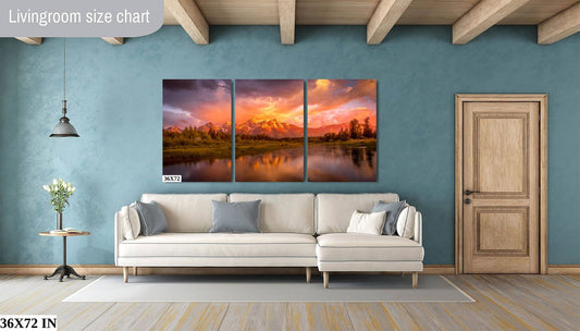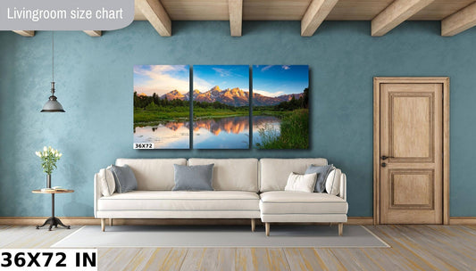 Grand Teton Sunrise Photo Canvas, Schwabacher Landing, National Park Landscape, Mountain River Reflection, Wyoming Large Wall Art Prints