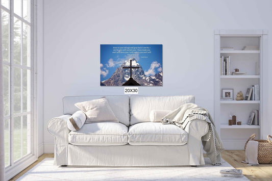 Isaiah 46:4 Christian Inspirational Wall Art, Cross on Mountain Scripture, Grand Teton Mountain National Park, Wyoming Landscape Photography