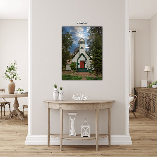 Old Country Church Photo Canvas Print, Colorado Mountain Photography Vertical Photo, Marble Forest Scene, Landscape Art