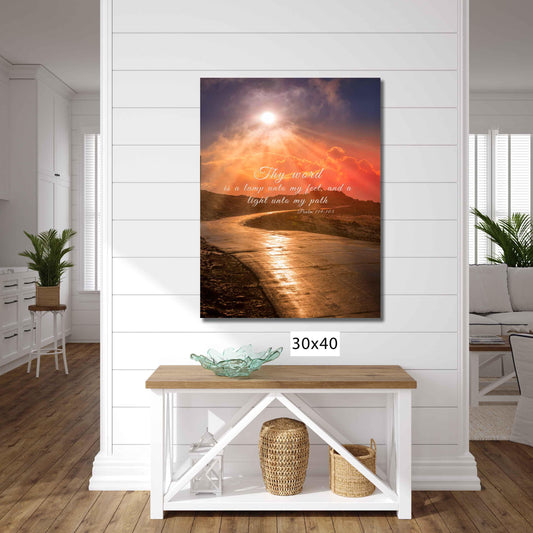 Psalm 119:105 Scripture Wall Art, Christian Inspirational Canvas, Thy Word is a Lamp, Colorado Vertical Photography Print, Mountain Sunrise