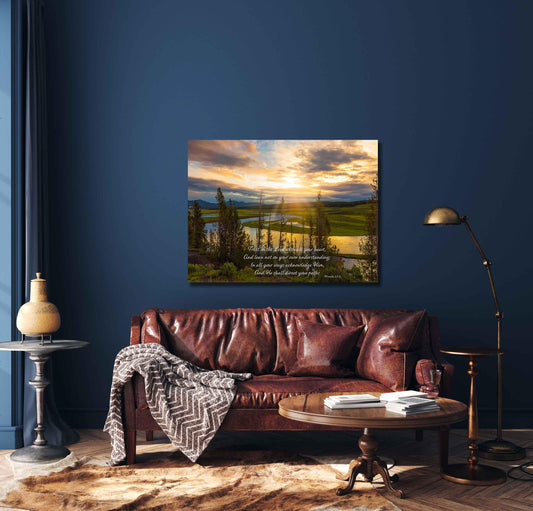 Proverbs 3:5-6 Christian Inspirational Wall Art, Scripture Wall Canvas, Hayden Valley Yellowstone Sunrise Photography, Bible Verse Decor