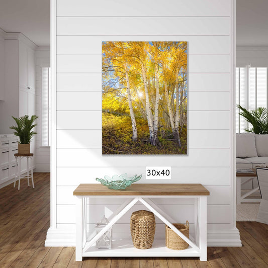 Vertical Aspen Trees Colorado Landscape Canvas, Fall Foliage Autumn Photo Print, Telluride Photography, San Juan Rocky Mountains