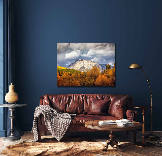 Mountain Peak in Autumn Print, Crested Butte Landscape Photo, Colorado Golden Aspens, Rocky Mountain Photography Canvas, Large Wall Art
