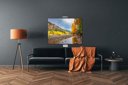 Colorado Landscape Fall Foliage Canvas, Crystal River Autumn Aspen Trees Photo Print, Beautiful Forest, San Juan Rocky Mountain Photography