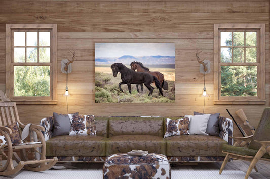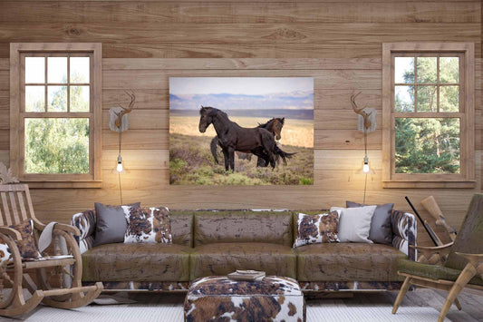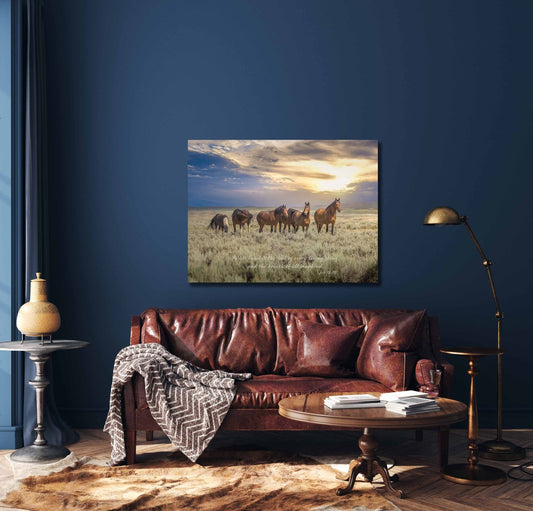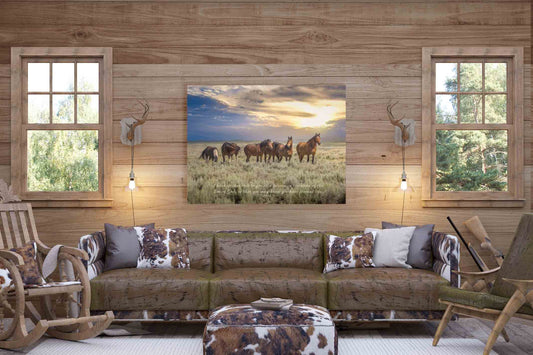 Wild Horses in Wyoming Wall Art Print, Wild Mustang Photo, Wildlife Canvas, Cowboy Old West Decor for Home, Living Room, Bedroom Office