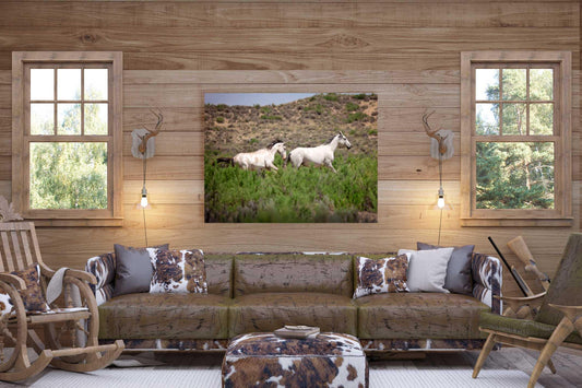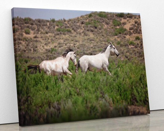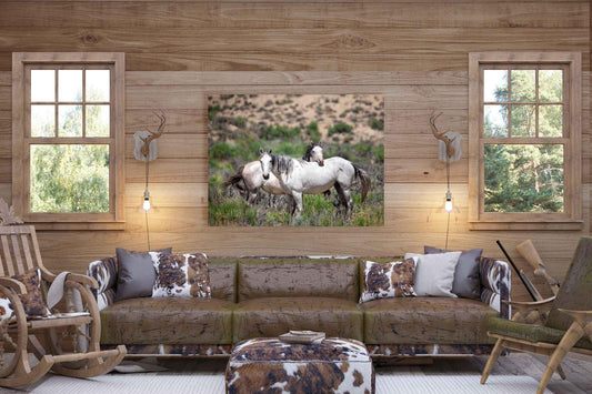 Wild Gray Mustangs in Colorado Photo, Wild Horses Photography, Wildlife Canvas, Wall Art Print, Cowboy Old West Decor for Home or Office