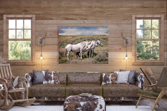 Metal or Acrylic Wild Mustangs Photo, Wild Horses in Colorado Wall Art Print, Pinto and Gray Mares, Wildlife Canvas, Cowboy Old West Decor