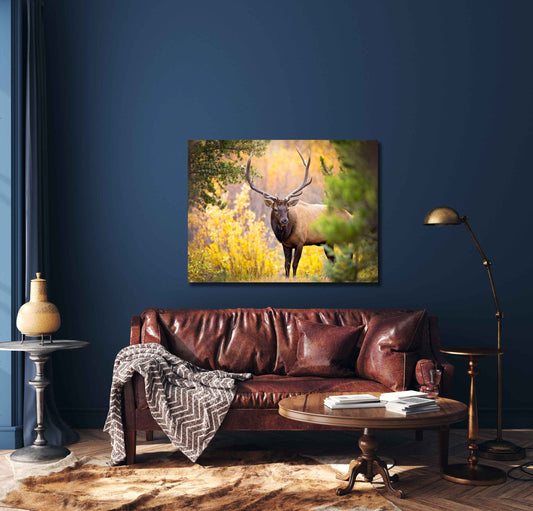 Bull Elk in Autumn Aspens, Wildlife Wall Canvas, Rocky Mountain National Park, Colorado Photography Art Print, Original Made in the USA
