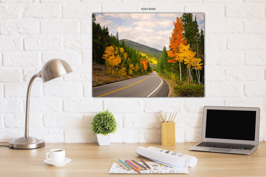 Rocky Mountain National Park Fall Aspens,Mountain Highway in Autumn,Colorado Landscape Canvas Wall Art,Decor for Living Room,Bedroom,Home