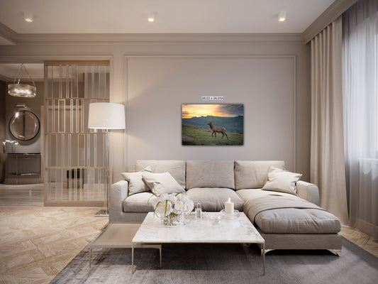 Canvas Wall Art Prints-Bull Elk on Tundra at Sunset, Rocky Mountain National Park-Wall Decor Ideal for Home ,Living Room, Bedroom and Office