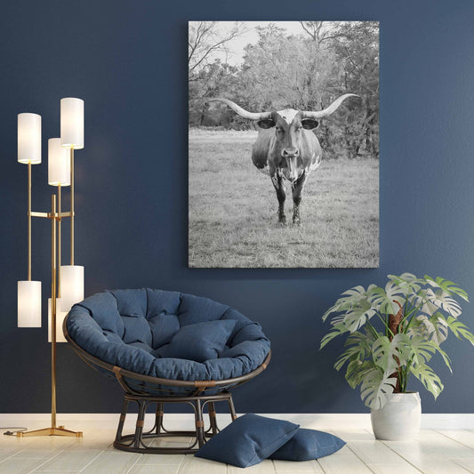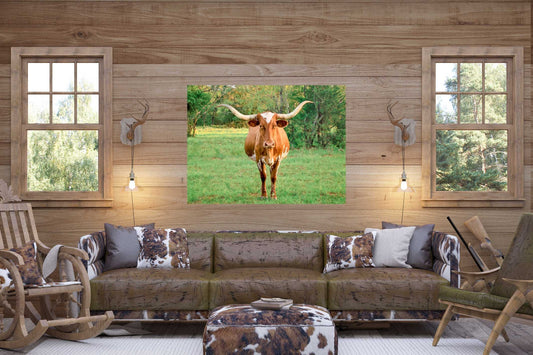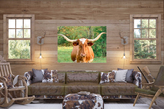Texas Longhorn Cow Wall Art, Western Rustic Decor, Canvas Print for Home or Office, Farm and Ranch