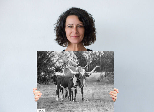 Texas Longhorn Black and White Print, Canvas Wall Art Prints, Cow Wall Art, Western Decor, Rustic Wall Decor for Home and Office