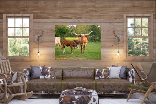 Texas Longhorn Cow Calf Print, Canvas Wall Art Prints, Cow Wall Art, Western Decor, Rustic Wall Decor for Home and Office