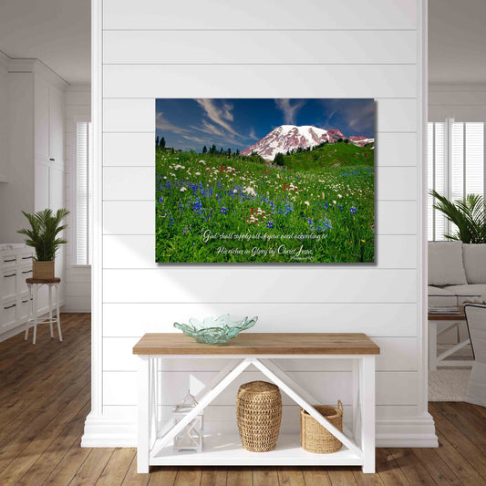 Philippians 4:19 Scripture Canvas, Mt Rainier Mountain Scene Bible Verse, Christian Inspirational Wall Art, My God Shall Supply Your Need
