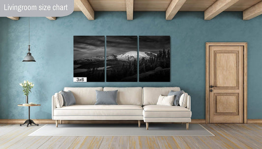 Mt Rainier Sunrise Photo Black and White Print, Mt Rainier National Park, Photography Landscape Canvas Wall Art Print, Washington Landscape