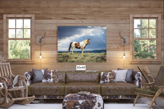 Wild Mustang Pinto Stallion Photo, Wild Paint Horse in Colorado Wall Art Print, Wildlife Canvas, Cowboy Old West Decor for Home or Office