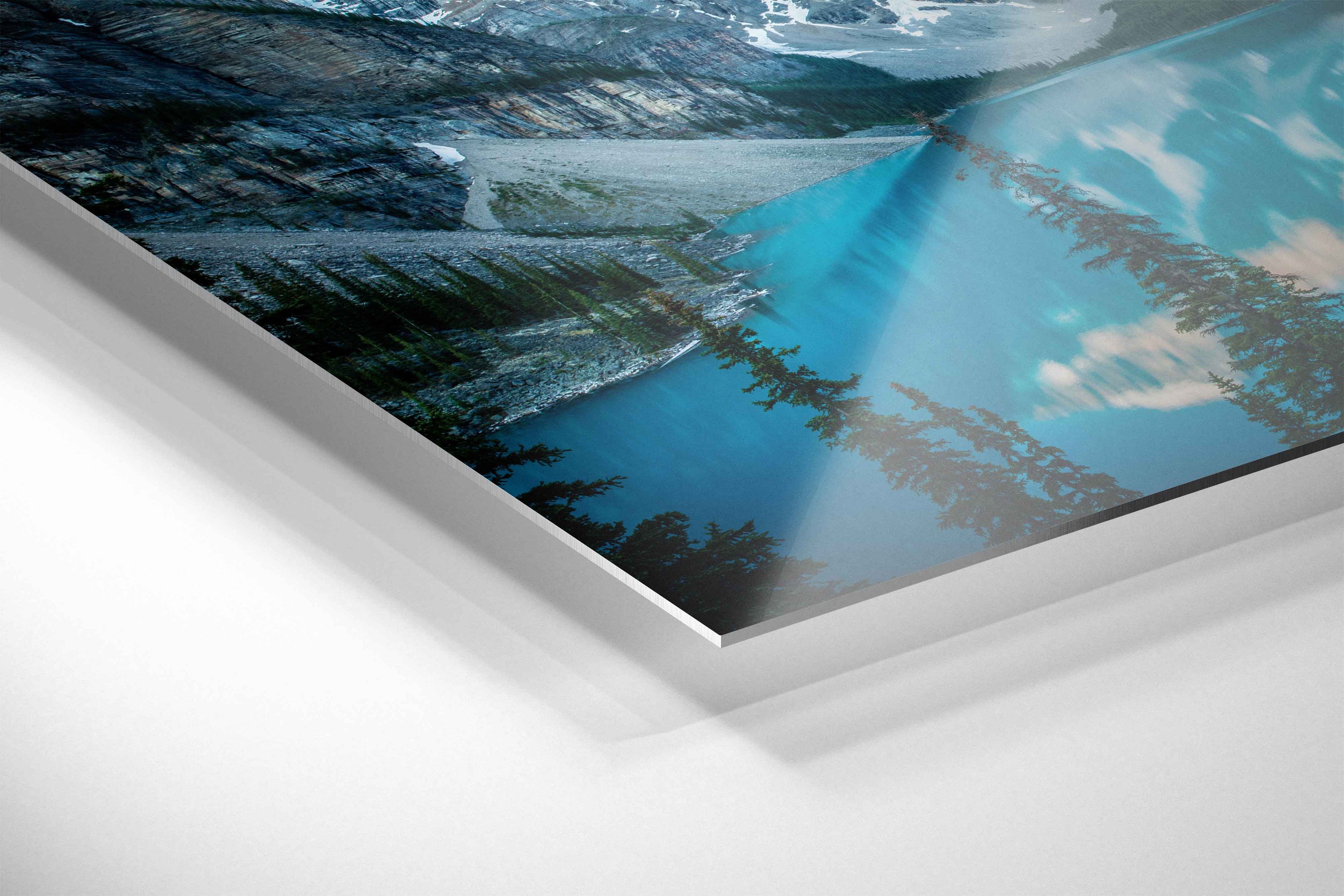 The luxury look of metal or acrylic finished with a black floating frame